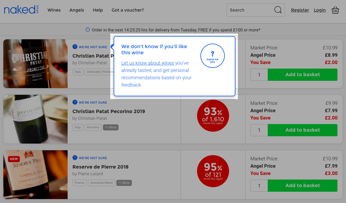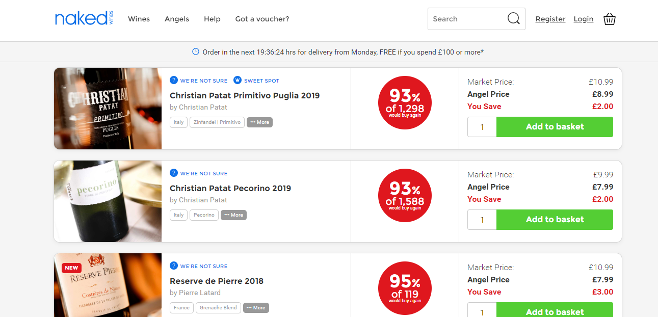 Naked Wines also uses customer reviews to improve wine tasting and buying experience.