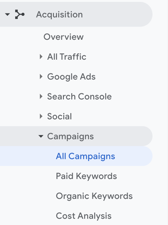 Once you start using UTM tags across your marketing campaigns, you’ll need to ensure you know how and where to find all that precious data. Fortunately, it’s pretty easy to find in Google Analytics under Acquisition > Campaigns > All Campaigns.
